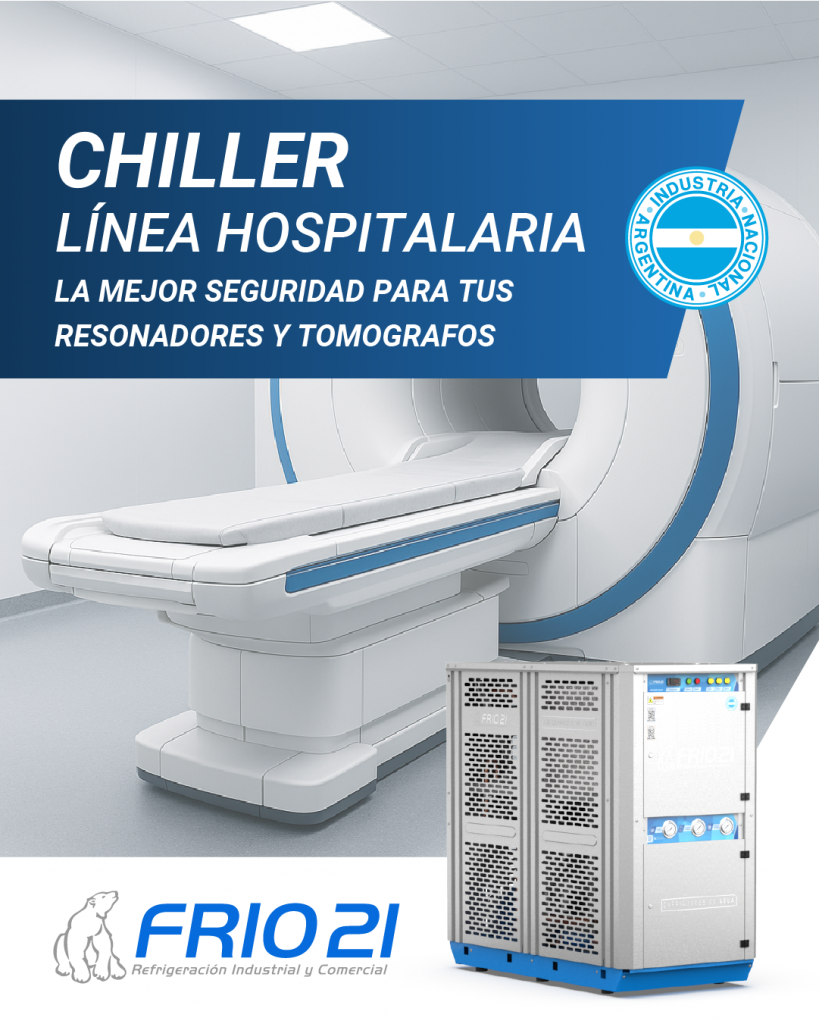 Agua fría para tomógrafos: cómo mantener el rendimiento óptimo y prolongar la vida útil del equipo médico FRIO NEWS En los centros de diagnóstico por imágenes, la precisión y continuidad operativa son fundamentales. Los tomógrafos generan una gran cantidad de calor durante su funcionamiento y, si no se controla adecuadamente, pueden producir fallas técnicas, interrupciones del servicio o una reducción en la vida útil del equipo. Un sistema de agua fría para tomógrafos es la solución ideal para mantener condiciones térmicas estables, garantizar resultados confiables y proteger la inversión en tecnología médica. ¿Por qué los tomógrafos necesitan refrigeración con agua fría? Los tomógrafos computados (CT) integran componentes electrónicos y de imagen altamente sensibles. La falta de un enfriamiento adecuado puede derivar en: Sobrecalentamiento de sistemas internos. Fallas en la calibración y calidad de imagen. Mayor riesgo de paradas imprevistas. Desgaste prematuro y costos elevados de reparación. El uso de chillers industriales diseñados para healthcare asegura un control térmico confiable y un funcionamiento ininterrumpido en equipos de diagnóstico médico. Beneficios de un sistema de agua fría para tomógrafos Rendimiento estable: garantiza imágenes de calidad en cada estudio. Continuidad operativa: evita tiempos de inactividad costosos. Ahorro en mantenimiento: protege componentes sensibles. Prolonga la vida útil del equipo médico. Diseño compacto y silencioso, ideal para entornos clínicos. Conocé más sobre nuestras soluciones en la sección Healthcare – Chillers para salud. Soluciones a medida de Frío 21 En Frío 21 desarrollamos chillers y enfriadores de agua industriales adaptados a las exigencias de centros médicos: Control preciso de temperatura 24/7. Compatibilidad con tomógrafos de diferentes marcas. Sistemas modulares, fáciles de instalar e integrar. Fabricación nacional con soporte técnico local. Nuestros equipos están diseñados para funcionar en condiciones críticas, garantizando fiabilidad y seguridad para tus equipos médicos. Soporte técnico y mantenimiento especializado Además de fabricar, ofrecemos un servicio integral que incluye: Asesoramiento técnico inicial. Instalación y puesta en marcha. Mantenimiento preventivo para evitar fallas. Atención postventa directa con fábrica. Descubrí más en nuestra sección de mantenimiento de chillers. ¿Buscás agua fría para tomógrafos? En Frío 21 acompañamos a clínicas y centros de diagnóstico con soluciones confiables de refrigeración industrial. Si necesitás asegurar la continuidad operativa de tu tomógrafo, contactanos hoy mismo. 👉 Escribinos a través de nuestra sección de contacto y recibí asesoramiento técnico sin cargo. Contactanos hoy mismo para cotizar tu chiller Contacto Equipos recomendados para esta aplicación: Conocé más MIC – Minichillers Están diseñados para cubrir bajas capacidades frigoríficas. Son ideales para cualquier industria que requiera poca potencia, pero con alta prestaciones y confiabilidad…. MEC – Chillers medianos Están diseñados para cubrir las capacidades frigoríficas promedio de la mayoría de las industrias. El 70% de los procesos que requieren enfriamiento están cubiertos en esta familia de equipos. Conocé más GRC – Grandes chillers Están diseñados para cubrir grandes capacidades frigoríficas gracias a la modularidad del sistema se puede ir aumentando la capacidad instaladas al ir incrementando la cantidad de modelos. Conocé más TMIC – Minichillers con tanque incorporado. Están diseñados para cubrir bajas capacidades frigoríficas. Son ideales para blisteras, máquinas de grabado láser y cualquier industria que requiera poca potencia, pero con alta prestaciones y confiabilidad. Conocé más TMEC – Chillers medianos con tanque incorporado. Están diseñados para cubrir un gran espectro de capacidades frigoríficas. Son ideales para el enfriamiento de procesos puntuales como puede ser inyectoras de plastico. Conocé más