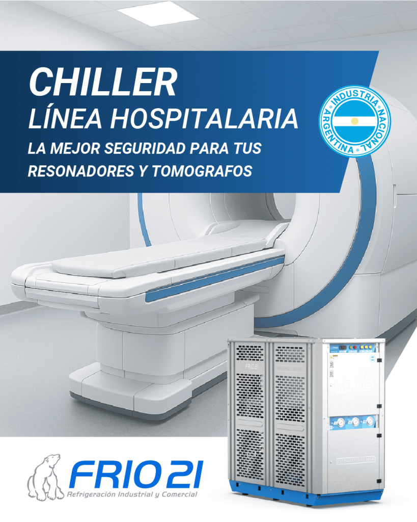 Agua fría para tomógrafos: cómo mantener el rendimiento óptimo y prolongar la vida útil del equipo médico FRIO NEWS En los centros de diagnóstico por imágenes, la precisión y continuidad operativa son fundamentales. Los tomógrafos generan una gran cantidad de calor durante su funcionamiento y, si no se controla adecuadamente, pueden producir fallas técnicas, interrupciones del servicio o una reducción en la vida útil del equipo. Un sistema de agua fría para tomógrafos es la solución ideal para mantener condiciones térmicas estables, garantizar resultados confiables y proteger la inversión en tecnología médica. ¿Por qué los tomógrafos necesitan refrigeración con agua fría? Los tomógrafos computados (CT) integran componentes electrónicos y de imagen altamente sensibles. La falta de un enfriamiento adecuado puede derivar en: Sobrecalentamiento de sistemas internos. Fallas en la calibración y calidad de imagen. Mayor riesgo de paradas imprevistas. Desgaste prematuro y costos elevados de reparación. El uso de chillers industriales diseñados para healthcare asegura un control térmico confiable y un funcionamiento ininterrumpido en equipos de diagnóstico médico. Beneficios de un sistema de agua fría para tomógrafos Rendimiento estable: garantiza imágenes de calidad en cada estudio. Continuidad operativa: evita tiempos de inactividad costosos. Ahorro en mantenimiento: protege componentes sensibles. Prolonga la vida útil del equipo médico. Diseño compacto y silencioso, ideal para entornos clínicos. Conocé más sobre nuestras soluciones en la sección Healthcare – Chillers para salud. Soluciones a medida de Frío 21 En Frío 21 desarrollamos chillers y enfriadores de agua industriales adaptados a las exigencias de centros médicos: Control preciso de temperatura 24/7. Compatibilidad con tomógrafos de diferentes marcas. Sistemas modulares, fáciles de instalar e integrar. Fabricación nacional con soporte técnico local. Nuestros equipos están diseñados para funcionar en condiciones críticas, garantizando fiabilidad y seguridad para tus equipos médicos. Soporte técnico y mantenimiento especializado Además de fabricar, ofrecemos un servicio integral que incluye: Asesoramiento técnico inicial. Instalación y puesta en marcha. Mantenimiento preventivo para evitar fallas. Atención postventa directa con fábrica. Descubrí más en nuestra sección de mantenimiento de chillers. ¿Buscás agua fría para tomógrafos? En Frío 21 acompañamos a clínicas y centros de diagnóstico con soluciones confiables de refrigeración industrial. Si necesitás asegurar la continuidad operativa de tu tomógrafo, contactanos hoy mismo. 👉 Escribinos a través de nuestra sección de contacto y recibí asesoramiento técnico sin cargo. Contactanos hoy mismo para cotizar tu chiller Contacto Equipos recomendados para esta aplicación: Conocé más MIC – Minichillers Están diseñados para cubrir bajas capacidades frigoríficas. Son ideales para cualquier industria que requiera poca potencia, pero con alta prestaciones y confiabilidad…. MEC – Chillers medianos Están diseñados para cubrir las capacidades frigoríficas promedio de la mayoría de las industrias. El 70% de los procesos que requieren enfriamiento están cubiertos en esta familia de equipos. Conocé más GRC – Grandes chillers Están diseñados para cubrir grandes capacidades frigoríficas gracias a la modularidad del sistema se puede ir aumentando la capacidad instaladas al ir incrementando la cantidad de modelos. Conocé más TMIC – Minichillers con tanque incorporado. Están diseñados para cubrir bajas capacidades frigoríficas. Son ideales para blisteras, máquinas de grabado láser y cualquier industria que requiera poca potencia, pero con alta prestaciones y confiabilidad. Conocé más TMEC – Chillers medianos con tanque incorporado. Están diseñados para cubrir un gran espectro de capacidades frigoríficas. Son ideales para el enfriamiento de procesos puntuales como puede ser inyectoras de plastico. Conocé más